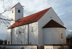 Von der Haltestelle des 185er-Buses sind wir gleich im Truderinger Wald, den wir durchqueren. Unser Ziel, das Kirchlein St. Aegidius in Keferloh erreichen wir nach insgesamt 2,1 km. Dort lassen wir den Raum auf uns wirken und bewundern die alten Fresken sowie die moderne