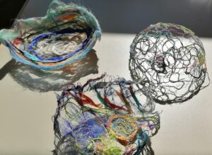 Beim meditativen Gestalten mit den textilen Materialien entsteht Schritt für Schritt ein einzigartiges Ganzes. Sie legen verschiedene Garne auf ein festigendes Vlies, verbinden die Elemente mit Nadel und Faden und erleben, wie sich Ihr Werk durch das Eintauchen ins Wasser verwandelt.